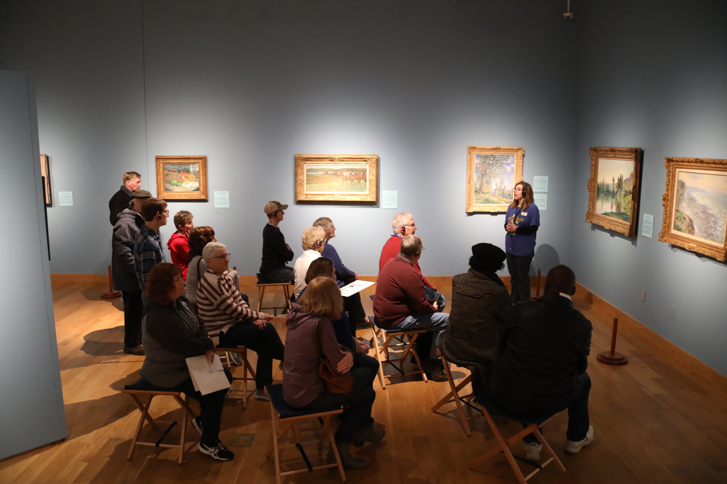 Curator of Education, Heather Casper, leading a Longer Look with visitors at MMAM.