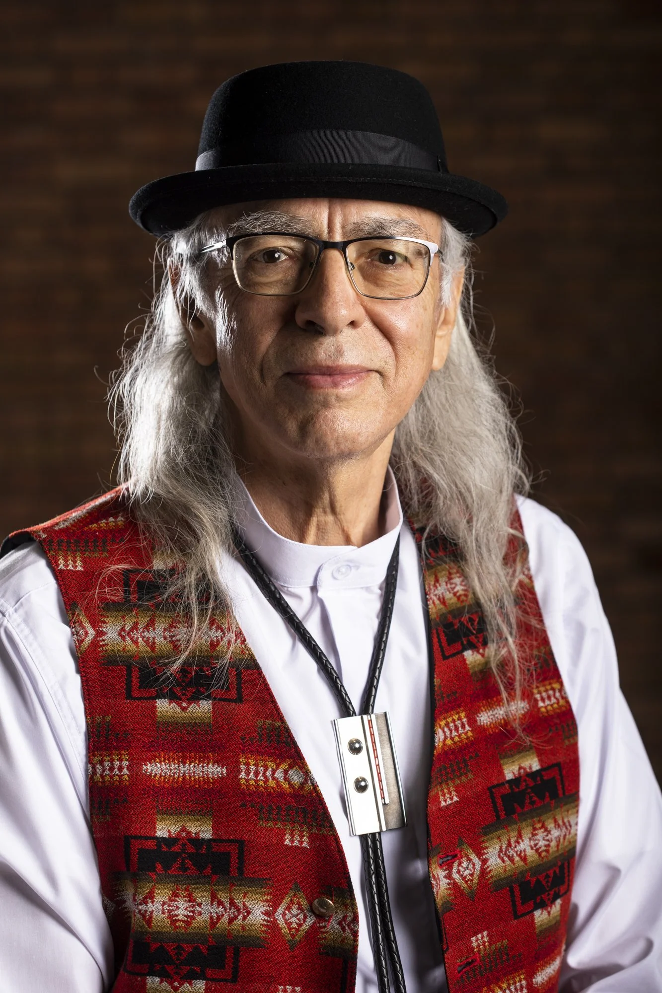 Gordon Coons is an enrolled member of Lac Courte Oreilles Ojibwa Band of Lake Superior Indians of Wisconsin and Ottawa/Potawatomi from his mother from Michigan. Gordon is a painter, printmaker, and fumage artist. Largely self-taught, he paints in the Ojibwa Woodland style and creates fumage, smoke art, by burning cedar. He embellishes his fumage pieces with 24-karat gold leaf to represent the grandfather the sun. He also prints with linoleum blocks. Coons draws inspiration from his Anishinaabe heritage, and his bright color palette comes from his natural surrounds in the Great Lakes region. “I also enjoy incorporating playfulness in my images, telling stories of relationships between Western and Native cultures, and the connection we have to our shared historical events,” he says in his artist statement. Gordon Coons exhibits nationally, and his work is in permanent collections across the country. More of his artwork can be seen online at gordoncoons.com.