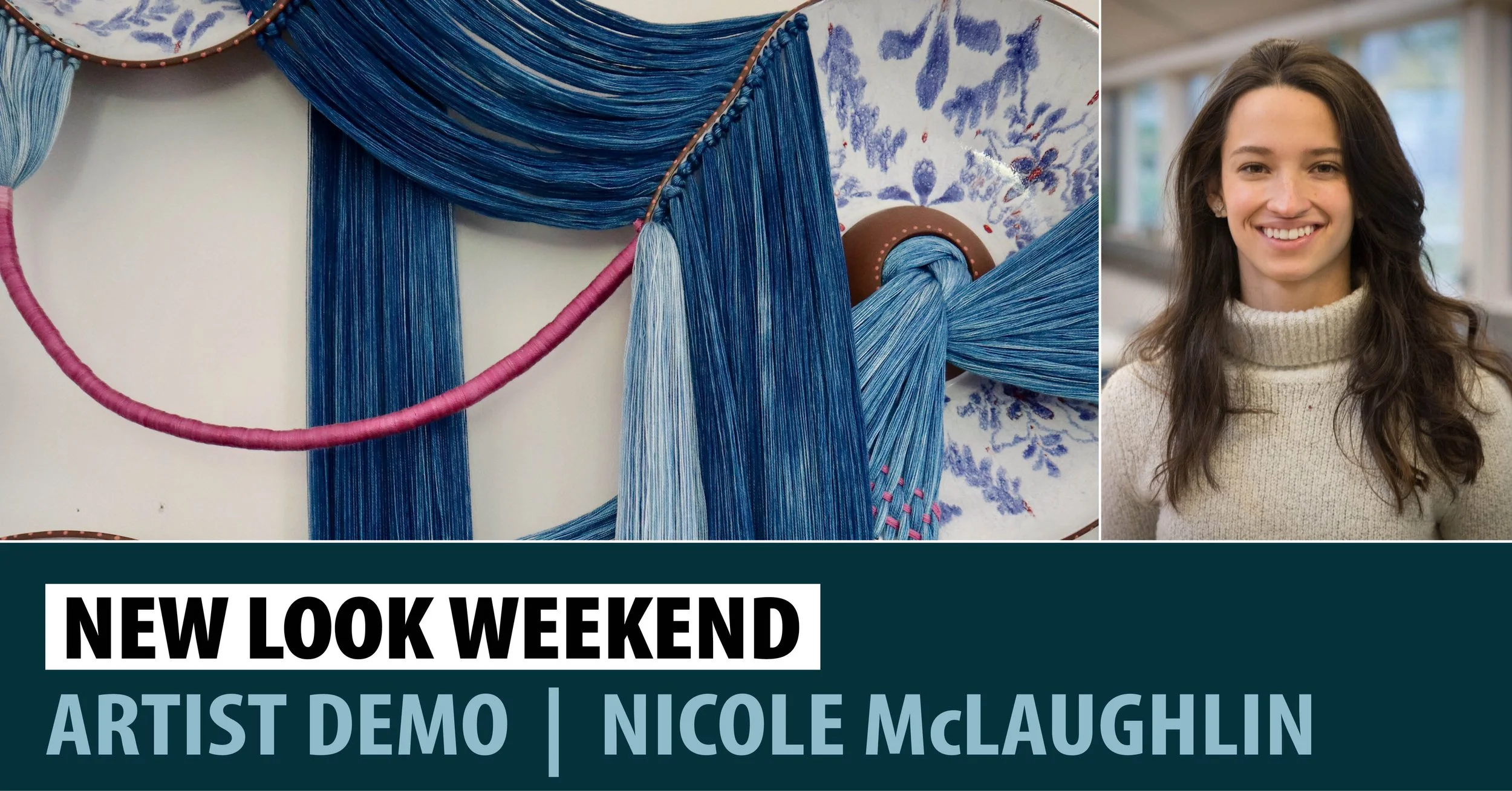 Join MMAM exhibiting artist, Nicole McLaughlin, for an artist demonstration that will serve as a window into her studio practice. Viewers will have the opportunity to experience each stage of her process. Watch as Nicole throws on the potter's wheel to create components for her sculptural works and then how she glazes and decorates the surface of each form. As a mixed media artist, often jumping between materials, Nicole will also show her process of dyeing thread in indigo and how she then integrates the dyed thread into her ceramic forms. While demonstrating her many processes, Nicole will speak on the importance of material choice and the historical and cultural significance of why she uses the materials and techniques that she does.