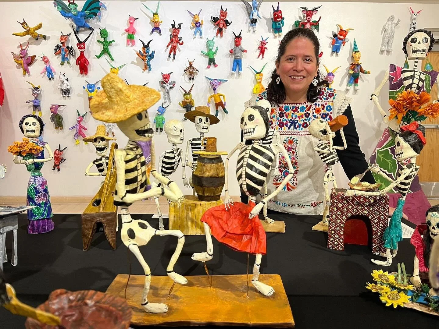 Central to her work is the traditional technique of cartonería, which originated in Spain and was brought to Mexico in the 16th century. Gabriella constructs her pieces using wire armatures, reed frames, or clay molds, building up layered paper forms. Compared to most papier-mâché, cartonería produces a smoother, stronger surface. The term itself comes from the Spanish word cartón, meaning cardboard or heavy paper. Today, the technique is closely associated with Mexico’s Day of the Dead celebrations, where artists—known as cartoneros—create expressive figures such as Catrinas, skulls, and skeletons to adorn streets, museums, and cultural spaces from October 31 through November 2.