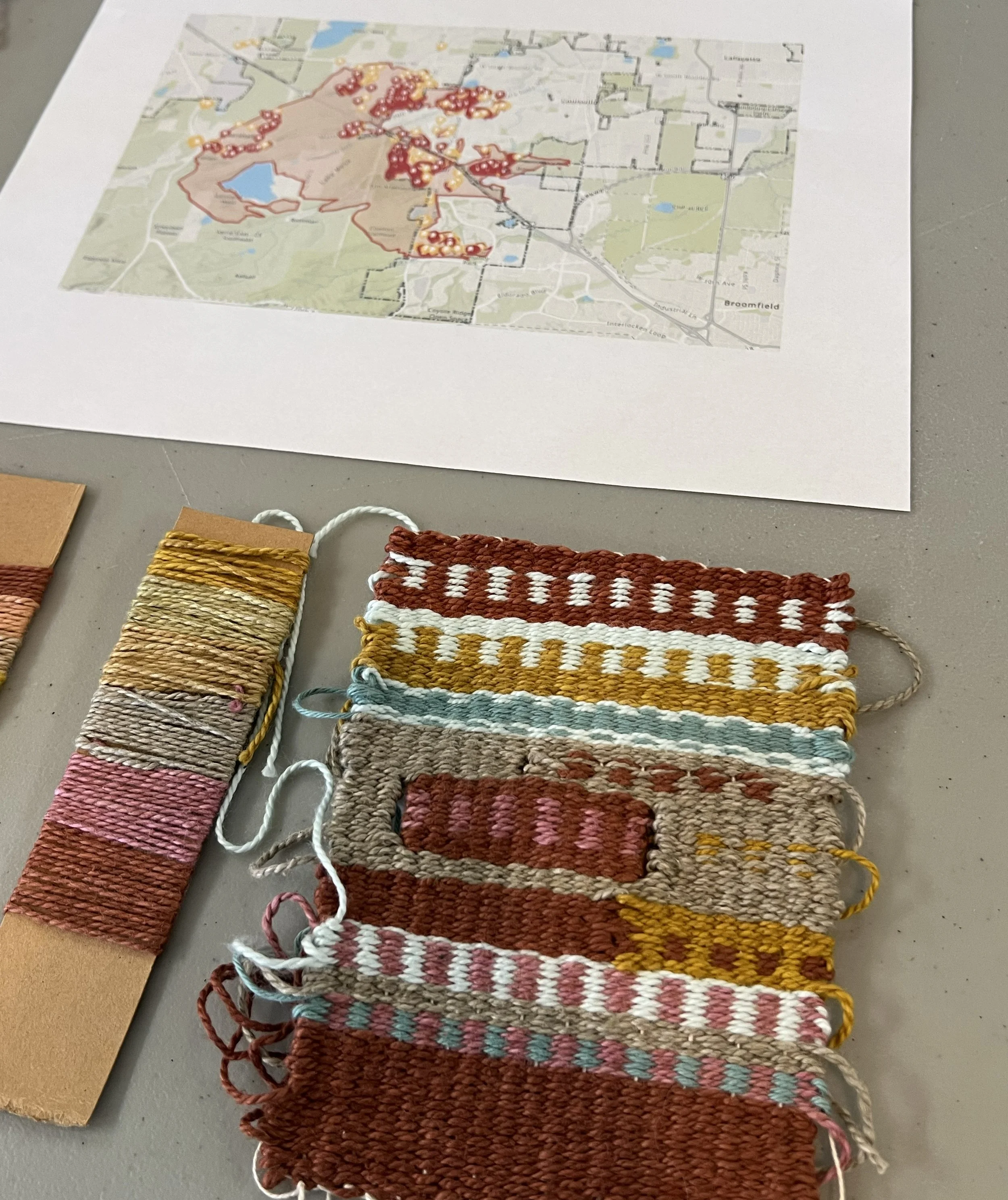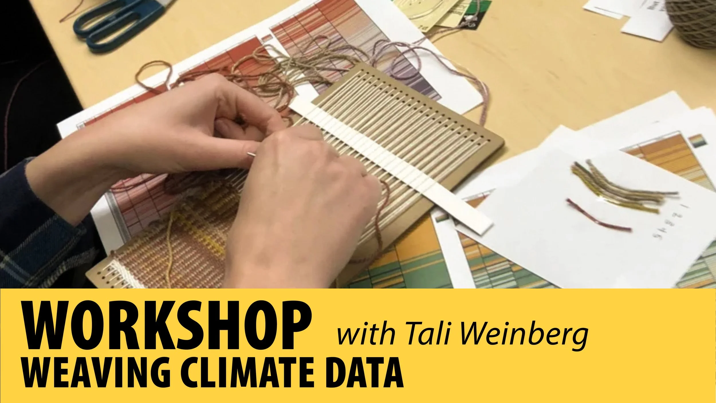 Join Water | Craft exhibiting artist Tali Weinberg for a hands-on workshop exploring how weaving can translate data, memory, and emotion into tactile form. Participants will begin by reflecting on landscapes and waterscapes meaningful to them, then learn to interpret climate data through color and pattern on small frame looms. The session combines discussion, observation, and creative making—transforming information about place and climate into woven studies that honor both scientific and personal relationships to the environment.