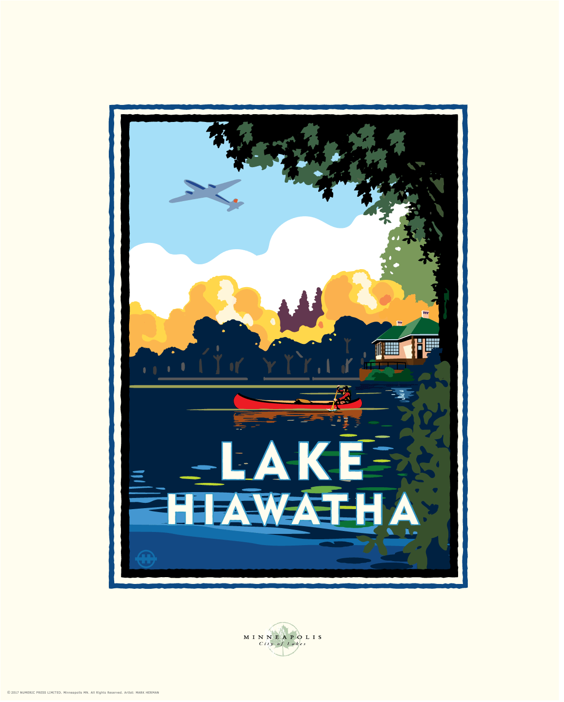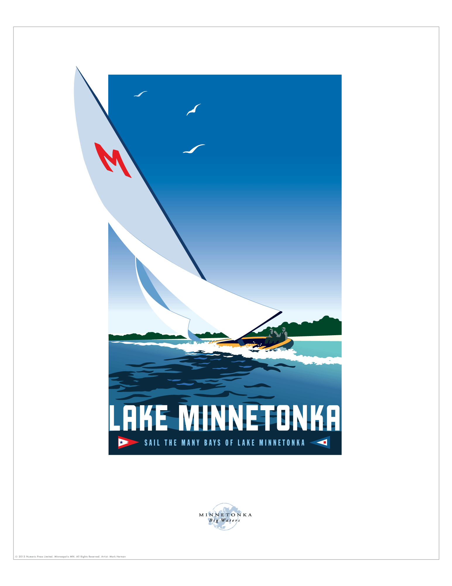 Mark Herman is an award-winning Minneapolis, Minnesota based illustrator and graphic designer. With a background in commercial design, he has completed projects for the likes of Major League Baseball, Sun Country Airlines, and Coca-Cola. As an artist, he creates digital images of our favorite natural and manmade locations in a distinctive, colorful, and vintage-inspired style. Herman is best known for his Landmark series, which he began in 2002. This series explores the lakes and rivers, culture and legends, urban architecture and popular vacation destinations across Minnesota, and beyond. His style is reminiscent of travel posters created by artists of the Works Progress Administration (WPA) during the 1930s, whose purpose was to promote travel during the Great Depression. His prints feature beloved locations such as Lake Superior, the North Shore, the Mississippi River, many of Minnesota’s favorite lakes, as well as images of popular parks, iconic buildings, boats, and bridges. And while he depicts recognizable regional landmarks like Split Rock Lighthouse and the State Capitol, he also makes an effort to show off some of the lesser known gems in the state, providing images for which everyone can make a deeper connection. Herman is sure to visit every site he portrays, “I like to make sure if I’m drawing something that I see it with my own eyes,” he says.