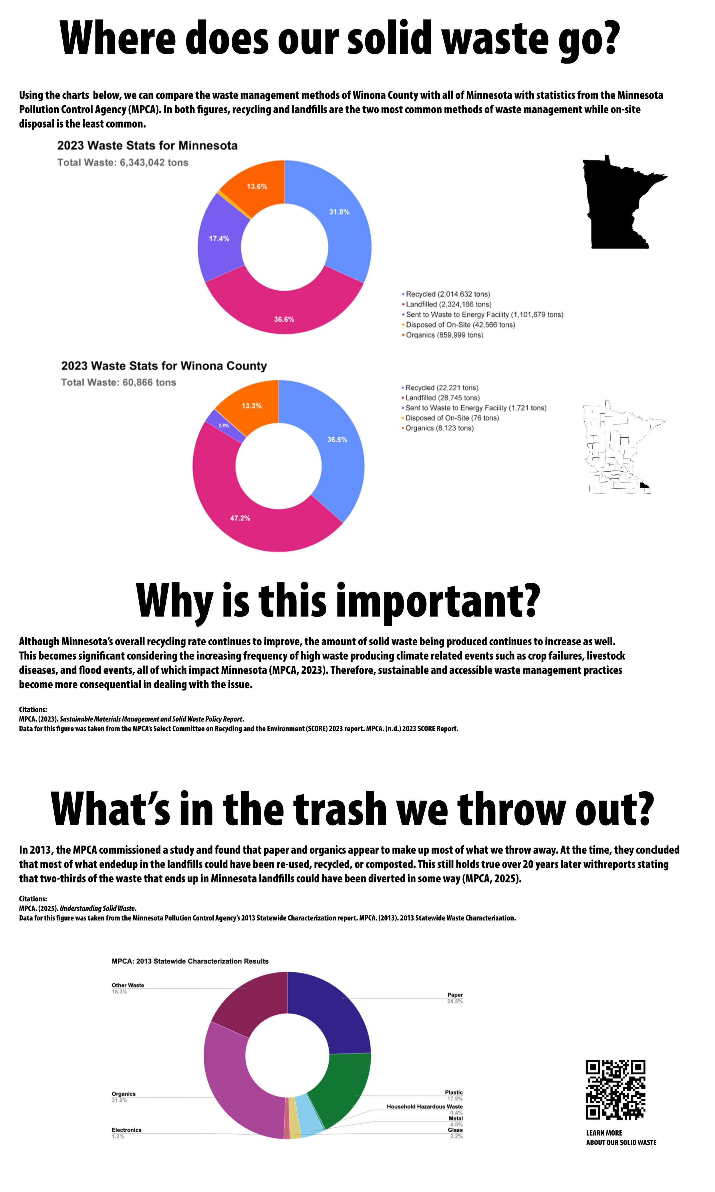 One third of the waste that ends up in MN landfills is organics. MN has 9 large organics composting sites you can drop off your organic waste at (MPCA, 2025).